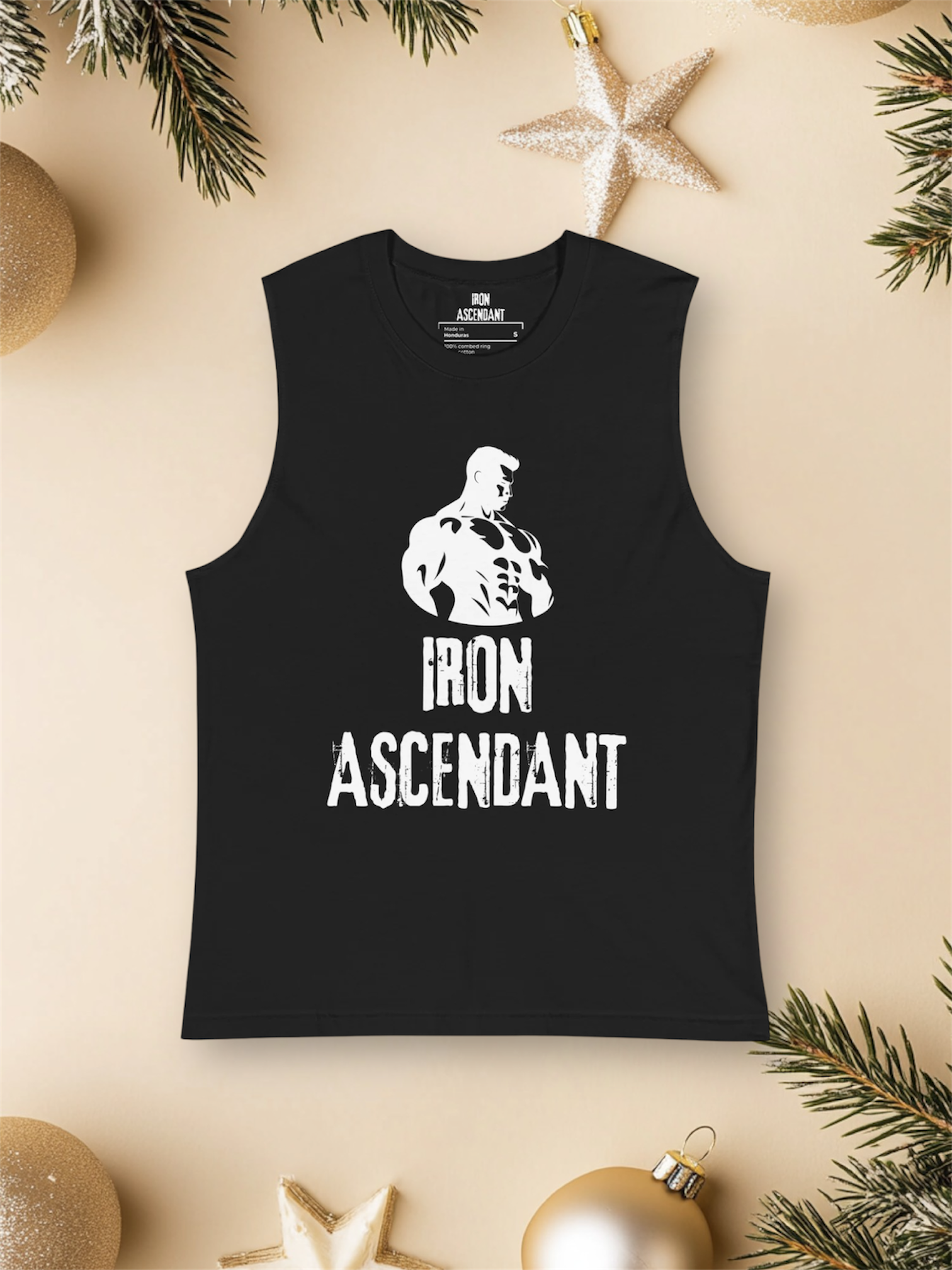 This is our logo muscle tank. It’s extremely soft cotton and very comfortable. It’s the perfect addition to your gym collection. Whether it’s arm day or you're just trying to show off the “guns”, we got you. Be an Iron Ascendant and rise to your full potential!